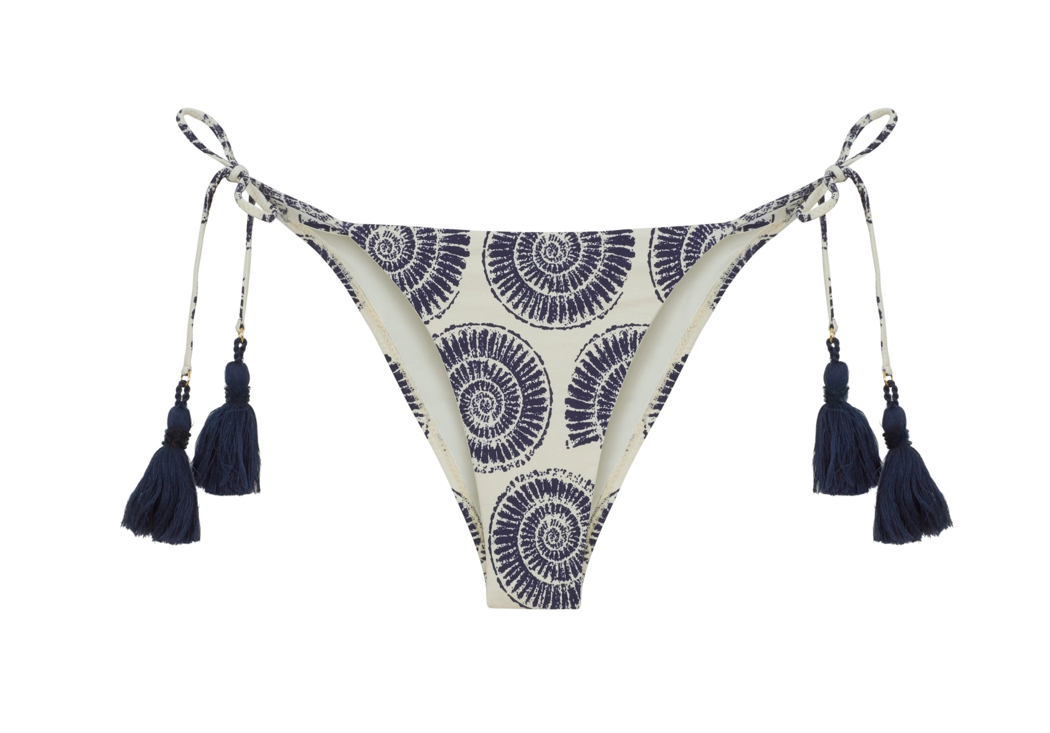 Nuestro Maya bottom es un básico de amarrar con corte moderado hecho en tela suave y cómoda. Tiene unos pompones tejidos en las tiras de ajuste. Composición de la tela: 86% Poliamida 14% Elastano.