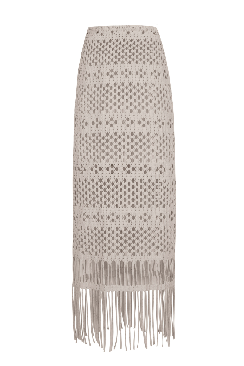 Falda larga hecha en tela suave tipo malla, cómoda con flecos. Perfecta para combinar con tus bikinis favoritos. Composición de la tela: Poliamida 96% Elastano 4%.